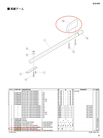 For ELS-02X pedal board. Black key Head