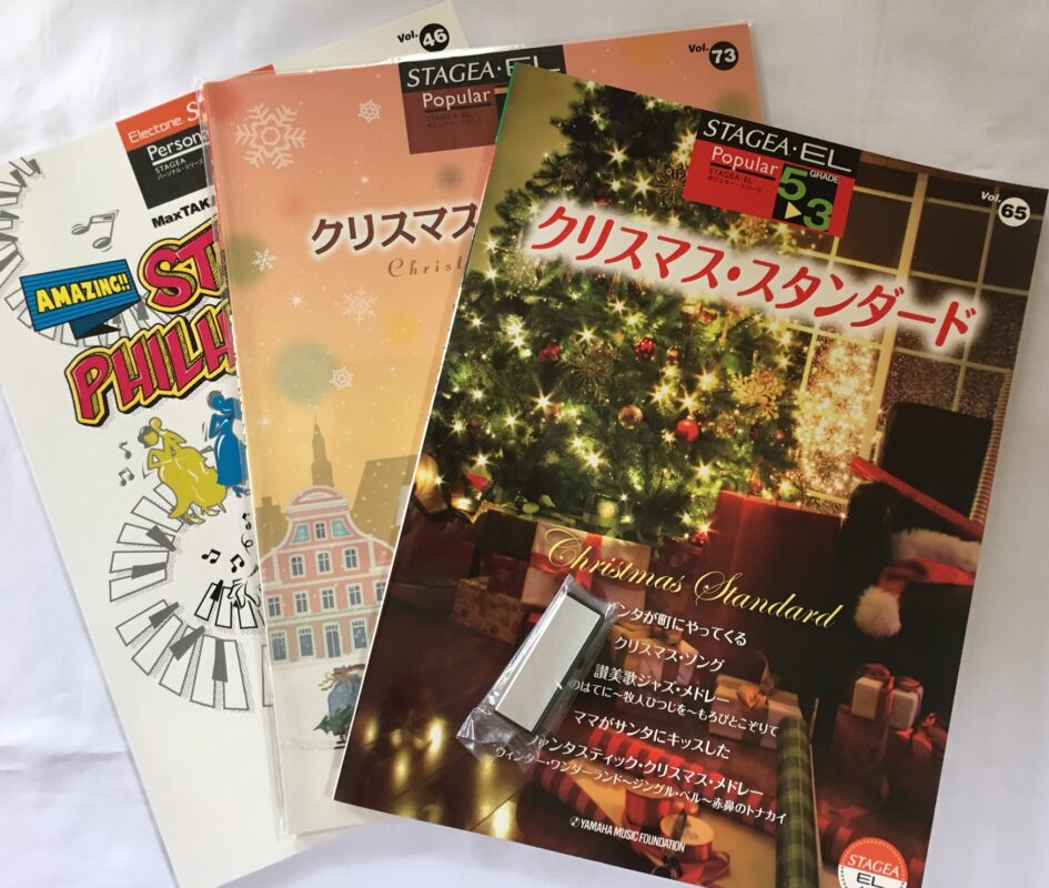 1) STAGEA Vol.51 Christmas Medley Grade 6-5 2) STAGEA Vol.34 826aska Grade 7-6 3) STAGEA Vol.35 CARPENTERS Grade 7-6