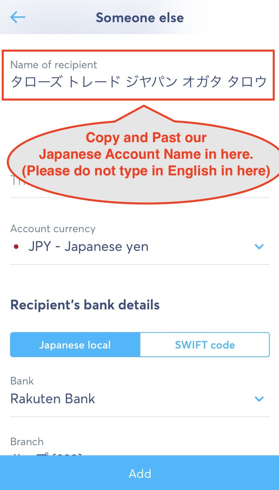 Choose Bank Name as ” Rakuten Bank “