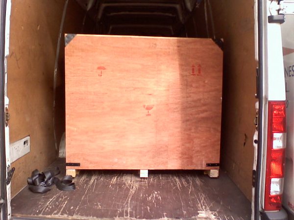 Attached you will find two photos. They have been taken when the instrument arrives to my house. As you can see the box occupied all the van (more than 2meters3). It was very well packed.