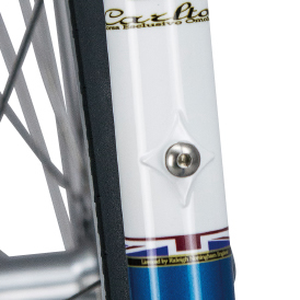 | Over the years, we adopted the REYNOLDS-631 tube which took over the manganese molybdenum steel REYNOLDS-531 which has earned high reputation and has characteristics suitable for TIG welding. A raley original material decal is placed behind the seat tube. | A head reinforcing ring that motifs the rug frame design, brazed to the upper and lower ends of the head tube. It also responds to stress from the headset, unifying the headset, fork crown and outer diameter, and contributing to the integral head-like appearance. | Down tubes, bowl seat of seat tube with brazed reinforcing plate with brazing. It followed the traditional construction method which also served as reinforcement of the bottle pedestal. It is colored with the decal’s artwork incorporating Union Jack as an image. |