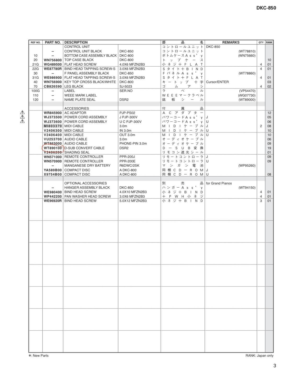 (Out of Stock)(N/A) Conversion cable for Disklavier [Part number:WT890100]