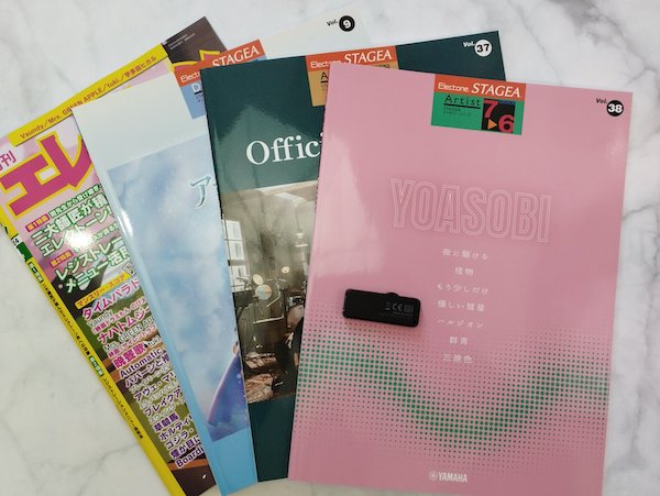 1) Monthly Electone Magazine April 2024 2) STAGEA Vol.9 Frozen 2 Grade 5 3) STAGEA Vol.38 YOASOBI Grade 7-6 4) STAGEA Vol.37 Offic...