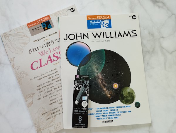 1) STAGEA Vol.12 Disney Medley Best Selection 2 (Grade 5-3) 2) STAGEA Vol.14 John Williams G5-3